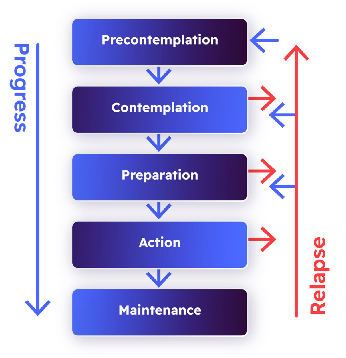 It is significant to highlight that the TTM takes relapses into account, considering the possibility that people could regress to a previous stage. However, each setback offers the opportunity to learn, and the person can utilise that information to help them in their subsequent attempts to improve.